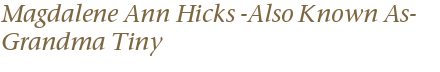 |  | I thank God for this woman!!! She is everything I think of when I speak of being wholehearted. She did everything from the heart. Never turned anyone away. She made the best cakes you could ever imagine. But most of all she loved hard. Her family was everything. When I say I miss this woman and love her with every ounce of my being....you still would not be able to understand. She has given so much of herself, that you wondered how she made it through. And; although she is not here physically, I pray that she is able to see me now!
